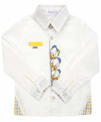 Pinetti I "Ready set Action" 57395-I Рубашка 95%хлопок5%спандекс Рубашка из хлопка с длинными рукавами и отложным воротником, с прорезным карманом листочкой и ярким принтом спереди. Белый 92-122 1310 / Новая цена, с учетом скидки - 655 руб. / размер - 98