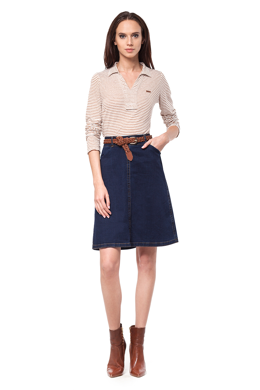 Блузка из натуральных волокон ЛЬНА и вискозы, обеспечивающих комфорт при носке. Классический отложной воротник, v-образный вырез горловины декорирован широкой планкой. Удлиненная спинка, на груди кожаная нашивка с логотипом.