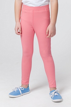 Джеггинсы из трикотажного полотна с декоративной строчкой в тон изделия. Сзади накладные карманы.