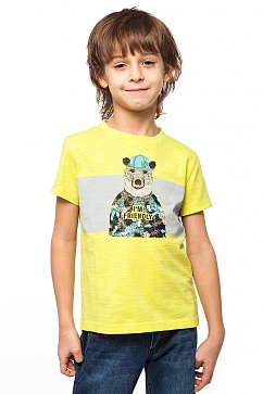 Футболка для мальчика из фактурного хлопкового трикотажа. Спереди декоративный принт. На рукаве декоративная нашивка с логотипом.