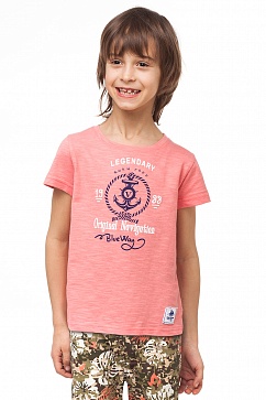 Футболка из фактурного хлопкового трикотажа. Изделие декорировано принтом и текстильной нашивкой.