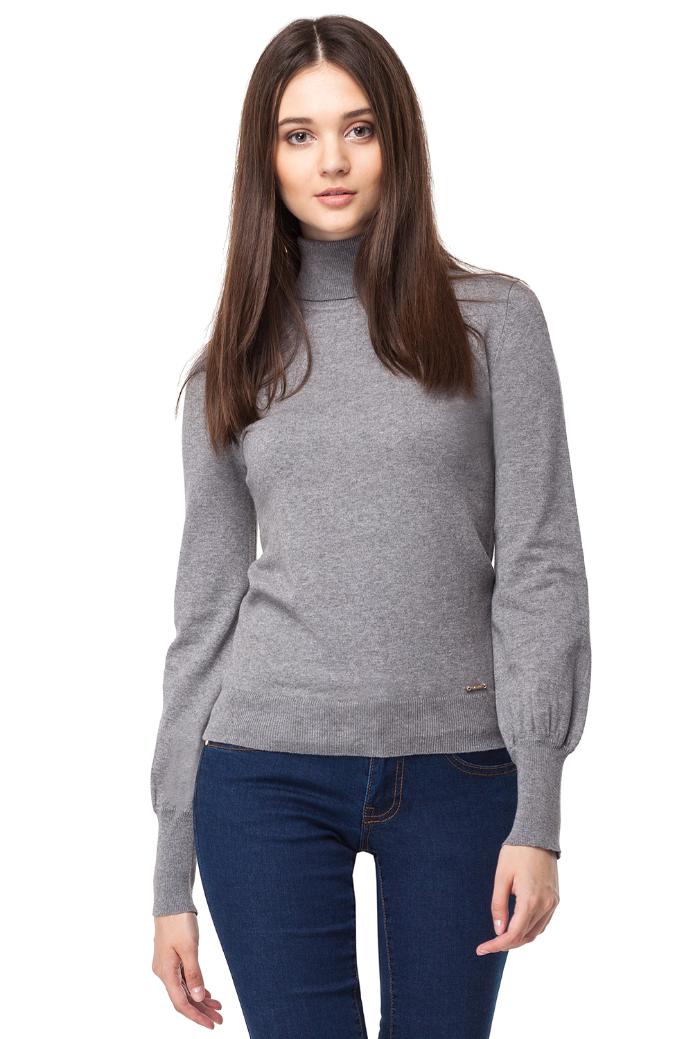 Трикотажный свитер с высоким отложным воротником выполнен из мягкой хлопковой пряжи. Объемный рукав собран на широкую манжету, придавая классическому фасону изделию нотки романтичности.