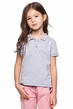 Футболка -поло из полотна пике со сборкой на плечах. По краю воротника - полоса контрастного цвета. Верхняя пуговица пришита нитками контрастного цвета.