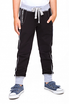 Спортивные брюки выполнены из эластичного двухниточного футера. Изделие дополнено контрастными отстрочками и деталями из рибаны. Широкий пояс на резинке с завязкой на шнурок. Боковые наклонные карманы с декоративным принтом.