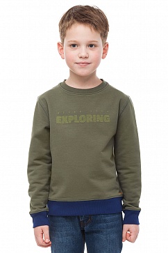 Толстовка для мальчика выполнена из эластичного двухниточного футера. Низ изделия и манжеты из рибаны. Нашивки с принтом на рукавах, спереди декоративный принт. По низу изделия нашивка с логотипом.