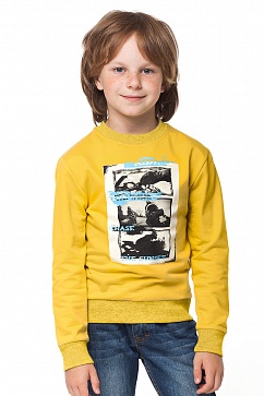 Толстовка для мальчика выполнена из эластичного футера. Спереди декоративный принт. Манжеты, низ изделия и горловина выполнены из рибаны.