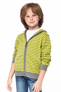 Жакет из мягкой хлопковой пряжи. Спереди застежка на пластиковую молнию. Сзади на рукавах декоративные налокотники контрастного цвета.