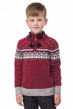 Джемпер из плотной хлопковой пряжи. Воротник-стойка утеплен флисом. Спереди застежка на декоративные пуговицы.