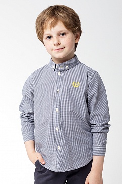 Рубашка с вышивкой контрастного цвета на груди. Нитки для пришивания пуговиц и для обработки петель - контрастного цвета.