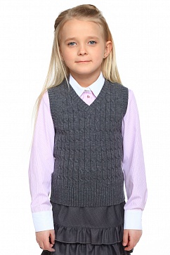 Классический вязаный жилет с v-образным вырезом выполнен из мягкой хлопковой пряжи. Вязка косами.