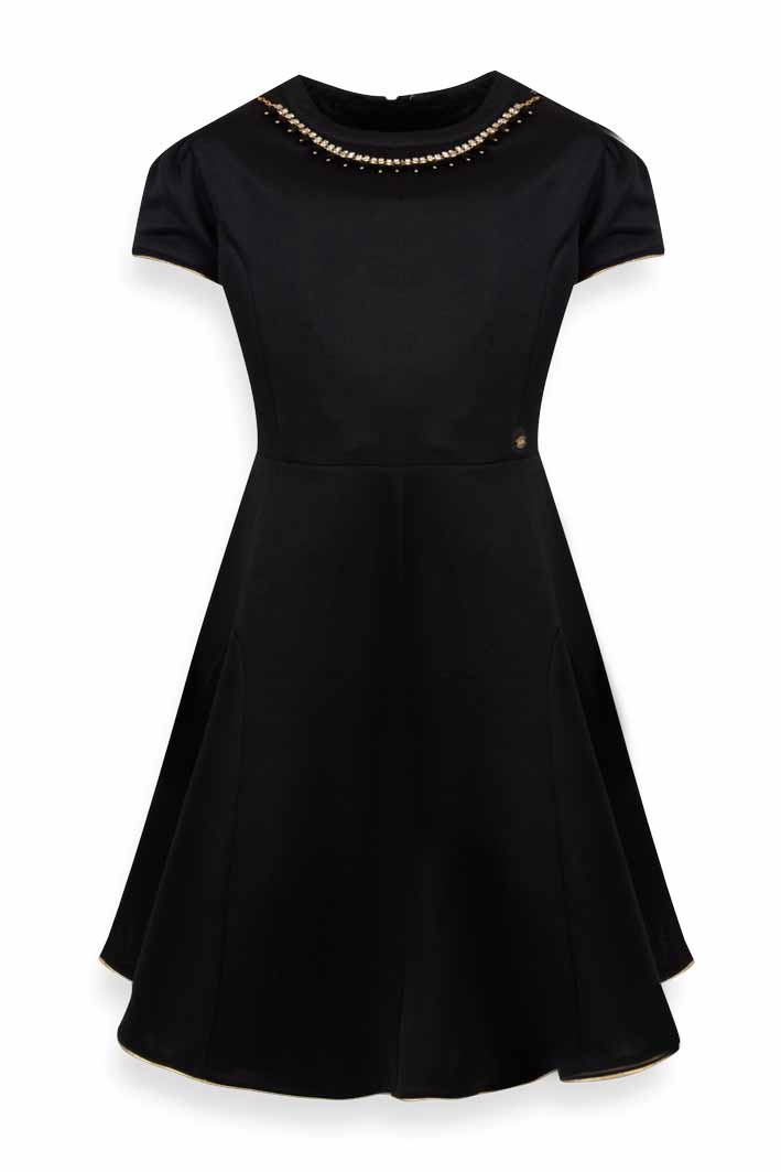 De Salitto Tinker 17220-E Платье 30% хлопок, 65% полиэстер, 5% эластан. Подклад 95% хлопок 5% спандекс Платье из трикотажа черного цвета. Юбка платья с клиньями. Горловина платья декорирована стеклярусным ожерельем. черный / цена- 2120,00 руб. размер 140