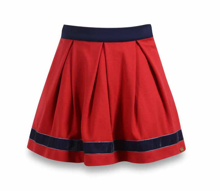 De Salitto Fashionista 17326-G Юбка 60% хлопок, 33% полиэстер, 7% эластан Юбка расклешенная из трикотажа на поясе. Низ изделия декорирован флоковой тесьмой. красный / цена- 1740,00 руб. размер 110