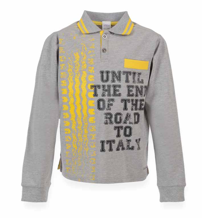 Pinneti Italy 517134-C Футболка длинный рукав 95% хлопок 5% спандекс Рубашка поло из меланжевого пике. Перед поло декорирован пластизолевым принтом. серый / цена- 1120,00 руб. размер 110