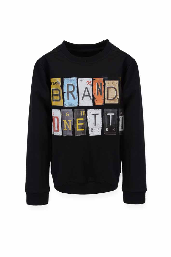 Pinneti Italy 517138-C Кофта 95% хлопок 5% спандекс Свитшот из трикотажа french terry. Перед свитшота декорирован пластизолевым принтом. черный / цена- 1040,00 руб. размер 122
