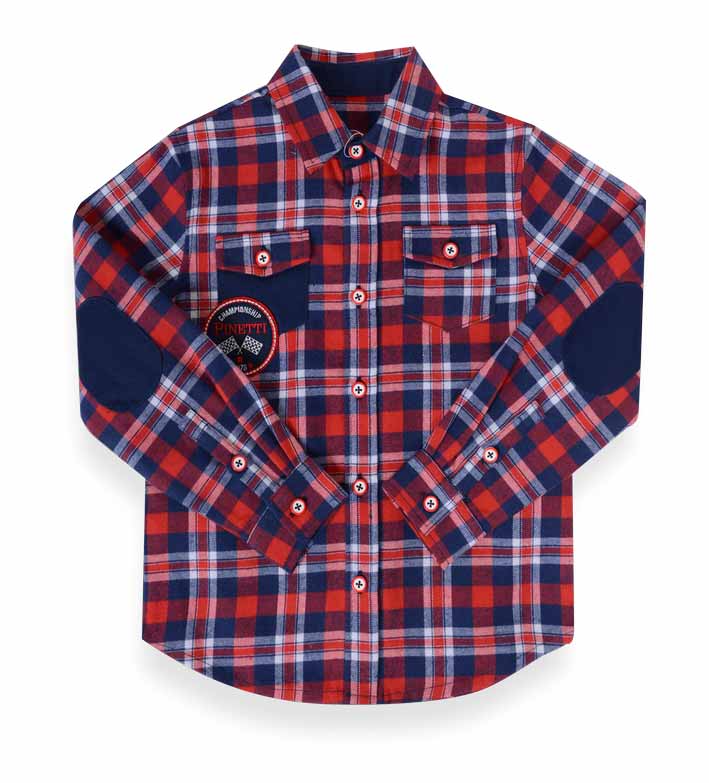 Pinneti Cars 517179-E Рубашка 85% хлопок, 15% полиэстер Рубашка фланелевая в клетку с двумя карманами. Рукава длинные втачные с манжетами, с декоративными заплатами на локтях. Карманы с клапанами, правый карман из контрастной по цвету ткани с нашивкой. красный/синий / цена- 1600,00 руб. размер 122