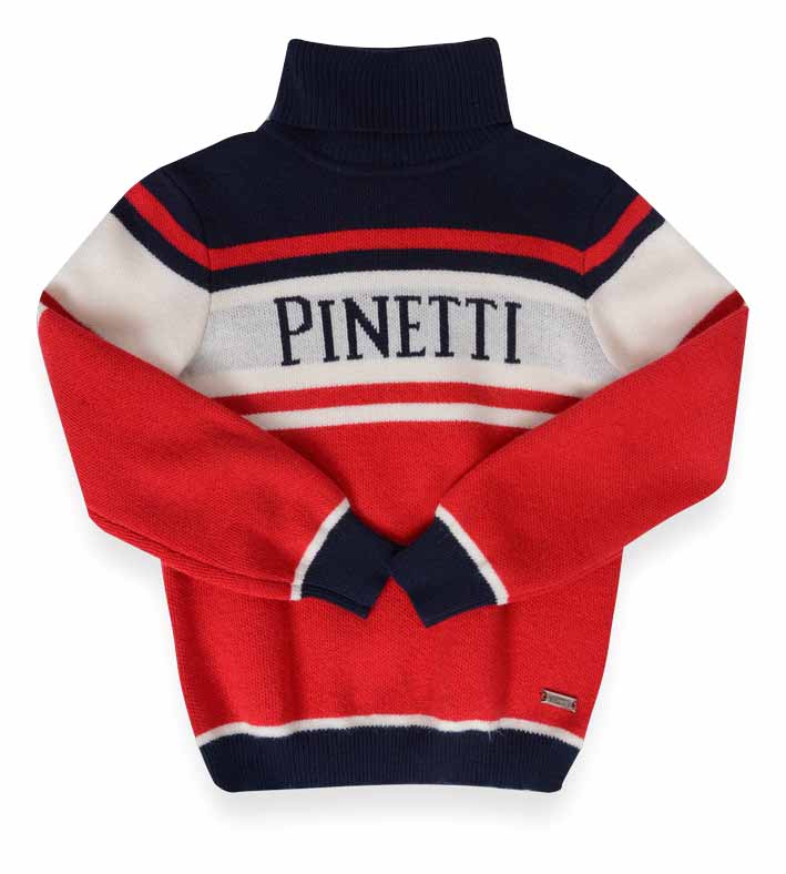 Pinneti Cars 517188-E Джемпер 10% шерсть, 30% вискоза 50% хлопок, 10% нейлон Водолазка вязаная с полосами трех цветов. На полочке вывязано лого. На рукаве - нашивка. Рукава длинные втачные с манжетами. синий/красный / цена- 1830,00 руб. размер 110