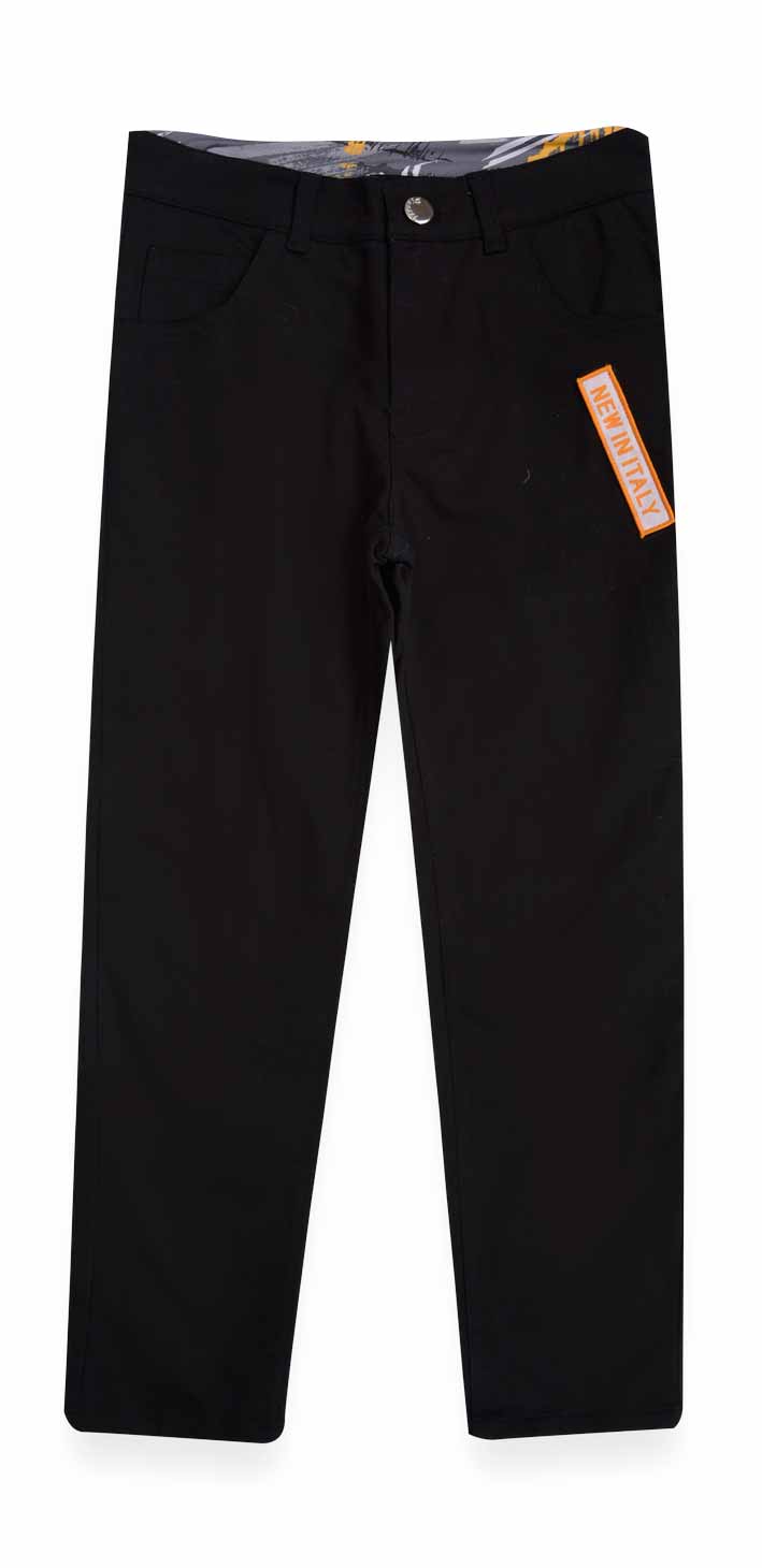 Pinneti Italy 517141-C Брюки 95% хлопок 5% спандекс Брюки из джинсы. Передняя половинка брюк декорирована нашивкой. Внутренняя часть пояса из принтованного хлопка. черный / цена- 1820,00 руб. размер 110