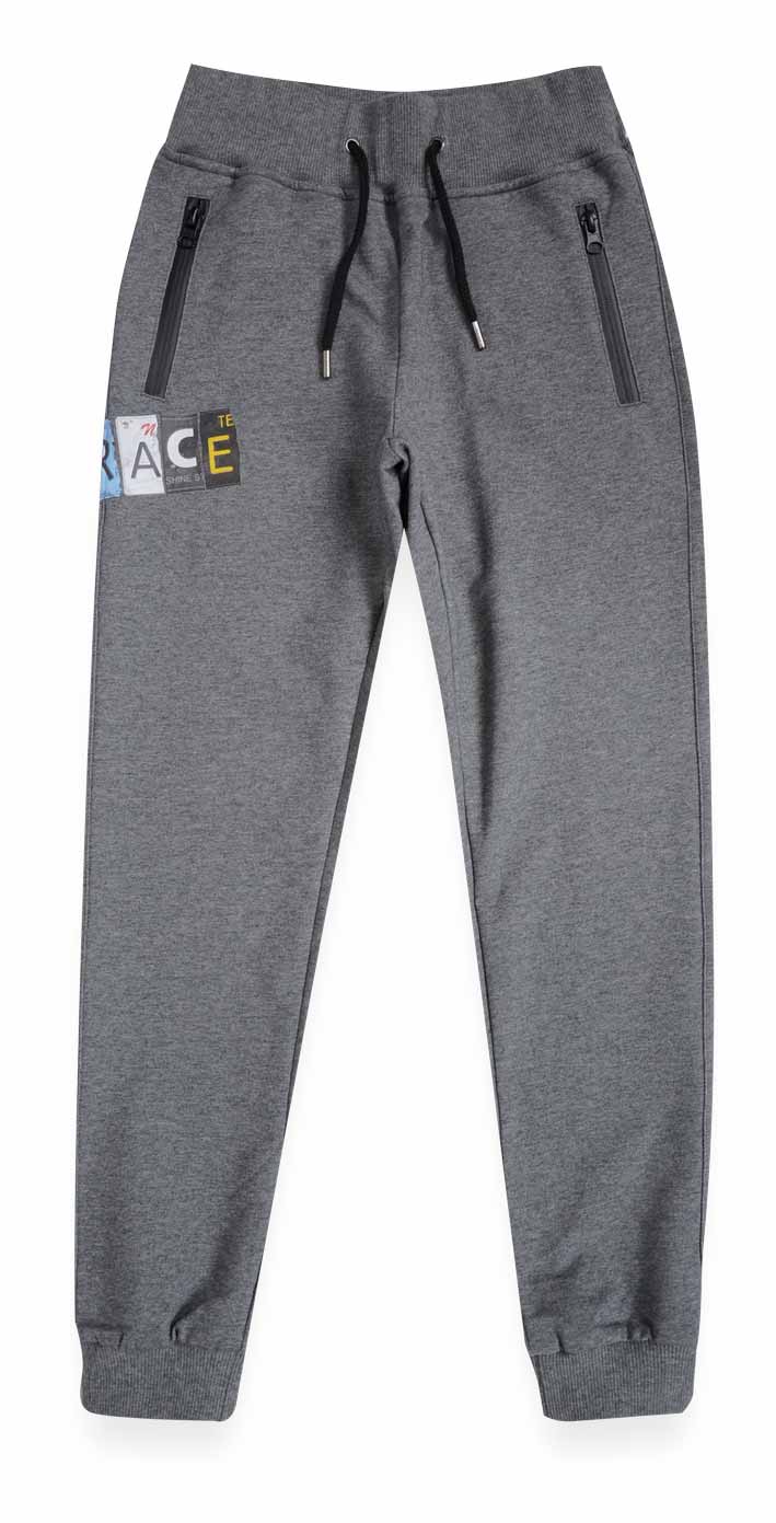 Pinneti Italy 517140-C Брюки 95% хлопок 5% спандекс Спортивные брюки из меланжевого трикотажа. Передняя половинка брюк декорирована пластизолевым принтом. серый / цена- 1410,00 руб. размер 140
