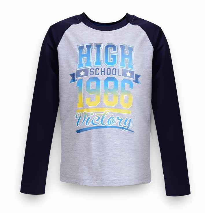 Pinneti College 517195-F Футболка длинный рукав 95% хлопок 5% спандекс серый/синий / цена- 940,00 руб. размер 150