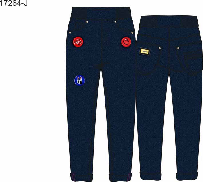 De Salitto Minnie 17264-J Джинсы 75% хлопок, 23% полиэстер, 2% эластан Джинсы прямого кроя на хлопковой подкладке. Пояс на мягкой резинке. Сзади накладные карманы. Перед украшен яркими нашивками. синий / цена- 2410,00 руб. размер 122