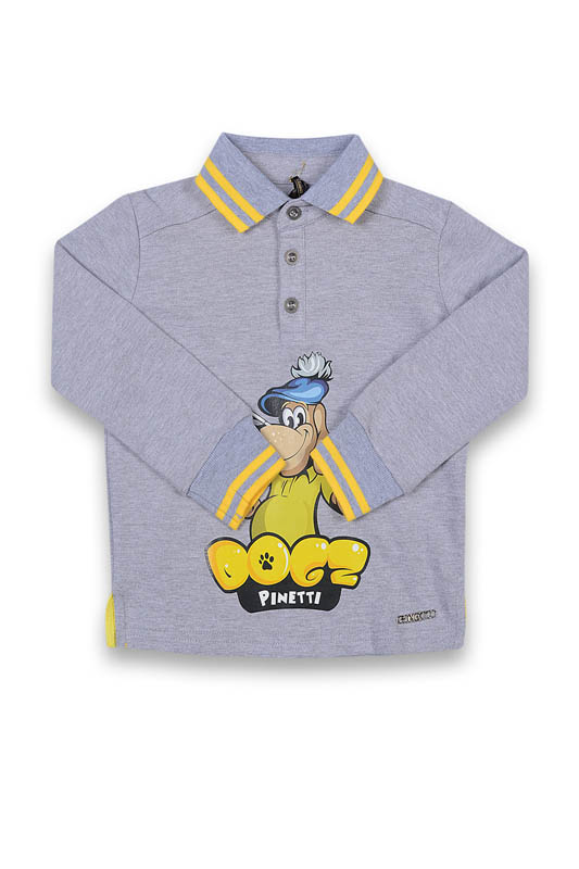 Pinneti 517120-B Футболка длинный рукав 95% хлопок 5% спандекс Рубашка поло с длинным рукавом из меландевого пике. Перед поло декорирован принтом. Спинка с кокеткой и декоративным кантом. серый / цена- 1110,00 руб. размер 98