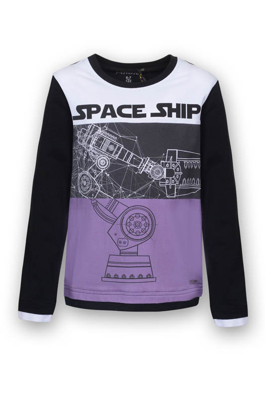 Pinneti 517150-D Футболка длинный рукав 95% хлопок 5% спандекс Футболка с длинным рукавом из трикотажа. Перед футболки декорирован принтом. Спинка футболки также декорирована принтом (брендовым) черный / цена- 1050,00 руб. размер 150
