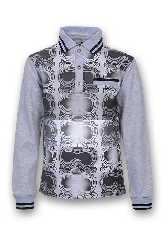 Pinneti 517162-D Футболка длинный рукав 95% хлопок 5% спандекс Рубашка поло с длинным рукавом. Перед рубшки принтованный. серый / цена- 1260,00 руб. размер 130