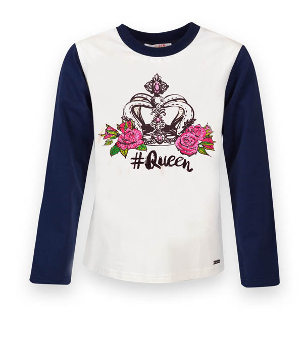 De Salitto Punk 17273-H Футболка длинный рукав 95% хлопок 5% эластан молочный/синий / цена- 1250,00 руб. размер 140