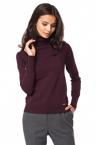 Однотонная трикотажная водолазка незаменимая вещь в каждом гардеробе. Изделие выполнено из хлопковой пряжи с добавлением нейлона для придания формоустойчивости изделию. Широкие манжеты украшены рядом серебристых пуговиц.