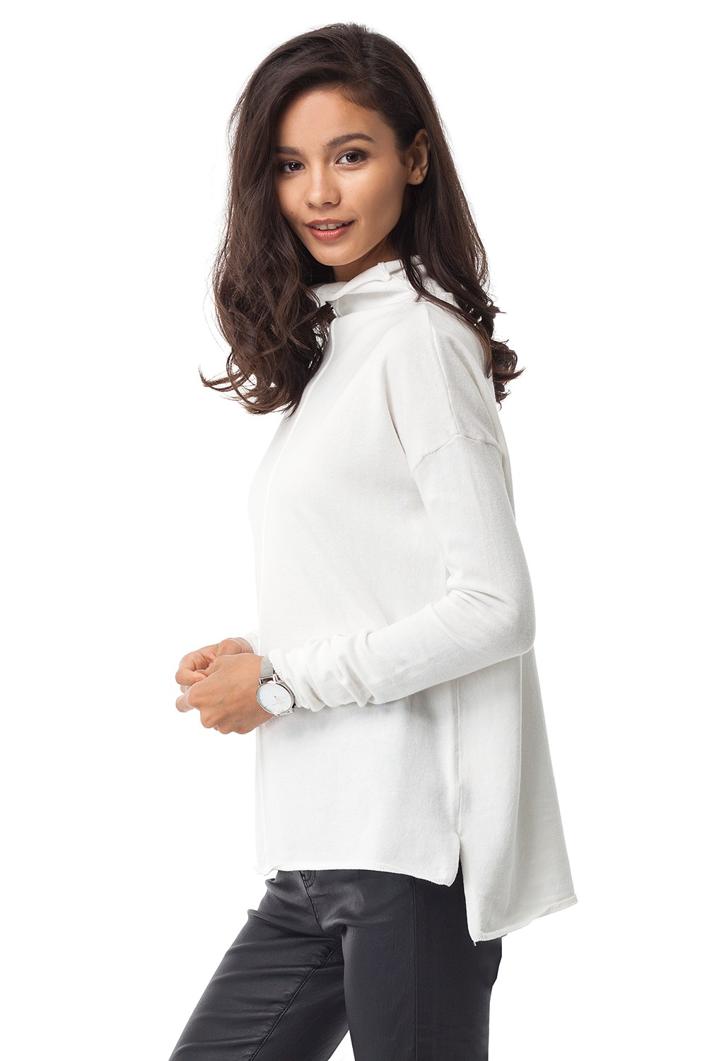 Трикотажный свитер с воротником-стойкой выполнен из хлопковой пряжи с добавлением нейлона для придания формоустойчивости. Изделие прямого кроя со спущенным рукавом и свободной посадкой по фигуре. Оригинальный дизайн и отличное качество исполнения.