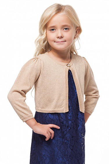 Жакет из пряжи с люрексом. Застежка на декоративную пуговицу. Укороченный рукав