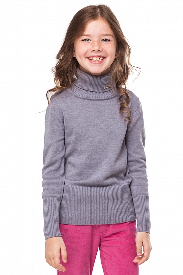Вязаный свитер из хлопковой пряжи с добавлением акрила для придания формоустойчивости. Высокий ворот с отворотом, широкие манжеты и низ изделия вязаны резинкой. Ворот изделия декорирован металлической нашивкой