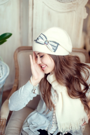 Комплект Маргарита (шапка+шарф) молоко/сирень, 21/4164N-11/40в, 56-58 (Landre) Россия /цена - 750 руб.