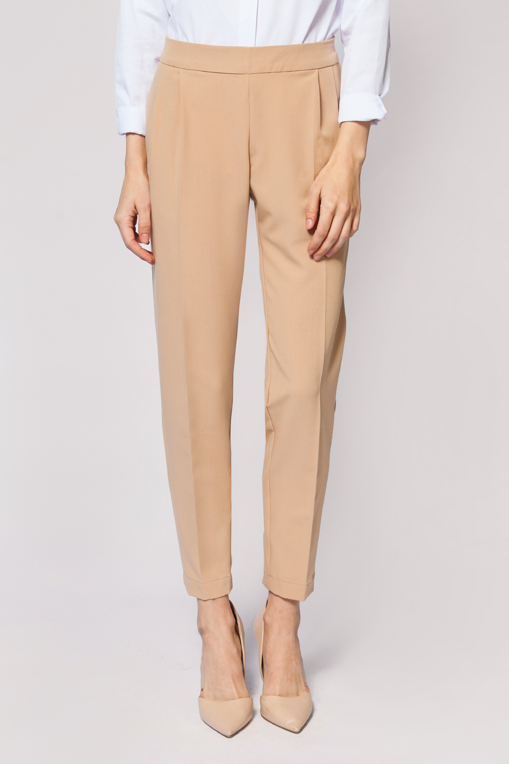 Брюки выполнены из эластичной поливискозной ткани с застежка на потайную молнию в боковом шве. Свободный силуэт с укороченными брючинами дополнен классическими наклонными карманами.