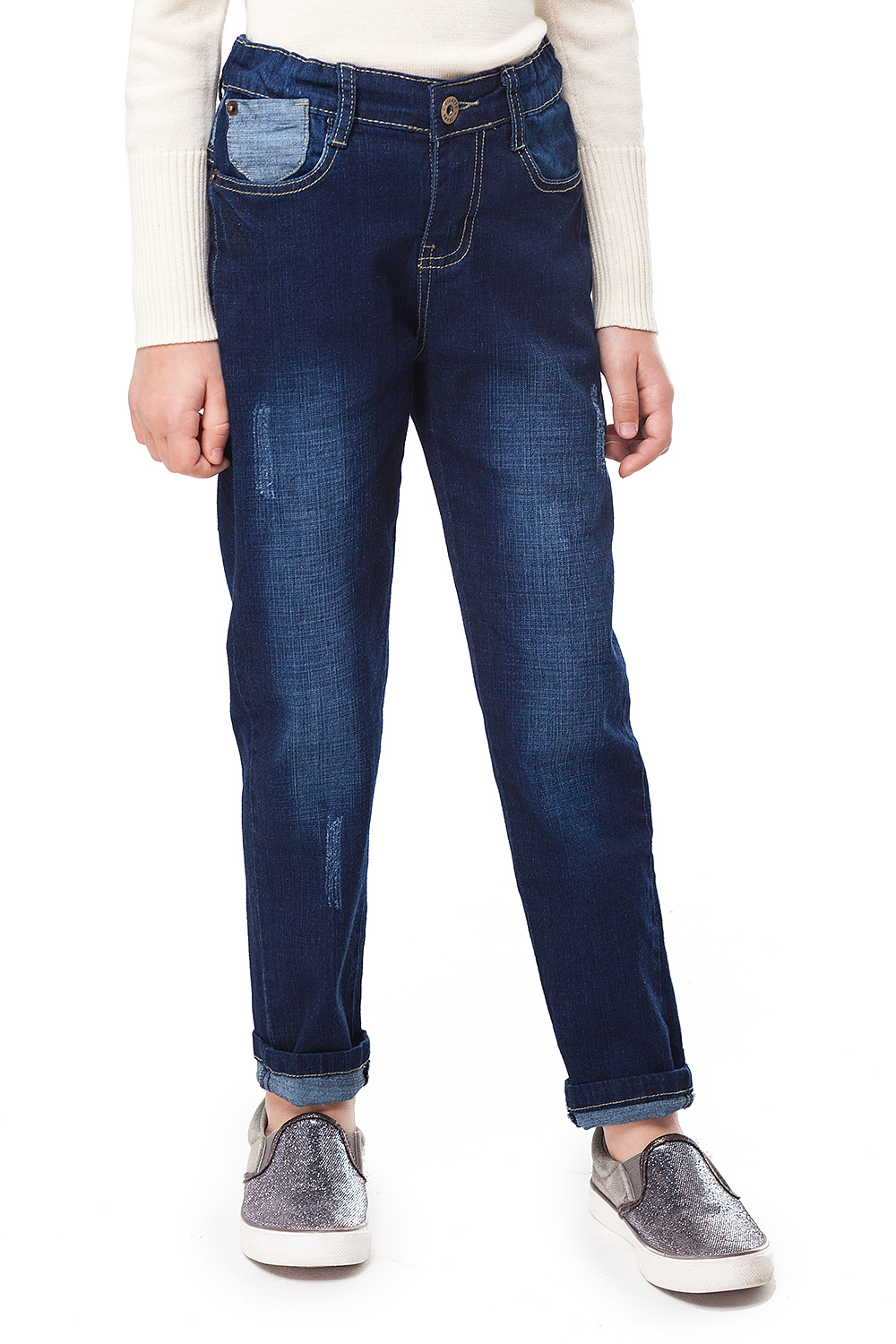 Джинсы для девочки выполнены из эластичного денима. Модель дополнена потертостями и эффектными деталями контрастного цвета. Пояс с регулируемой резинкой для лучшей посадки на талии.