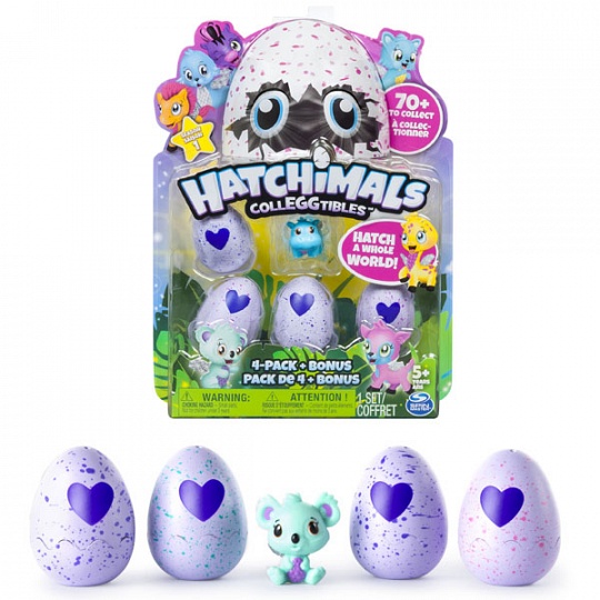В наборе представлено 4 яйца. Скорлупка у них фиолетовая, в цветную крапинку, а еще на них нарисовано сердечко, которое меняет цвет. Для того чтобы питомец вылупился, нужно потереть сердечко, пока оно не поменяет цвет с фиолетового на розовый. Теперь питомец готов к вылуплению! Нужно только аккуратно надавить на верхнюю часть скорлупки, чтобы помочь ему.