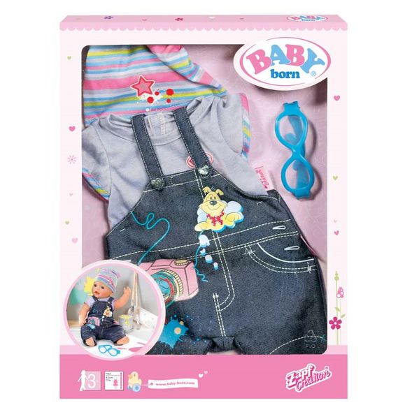 Джинсовая одежда предназначена для куклы BABY born 43 см и представлена двумя наборами. В один входит джинсовое платье, цветные леггинсы, шапочка и солнечные очки. В другой - футболка, комбинезон, шапочка и солнечные очки. Теперь твоя Бэби бон будет самой модной!