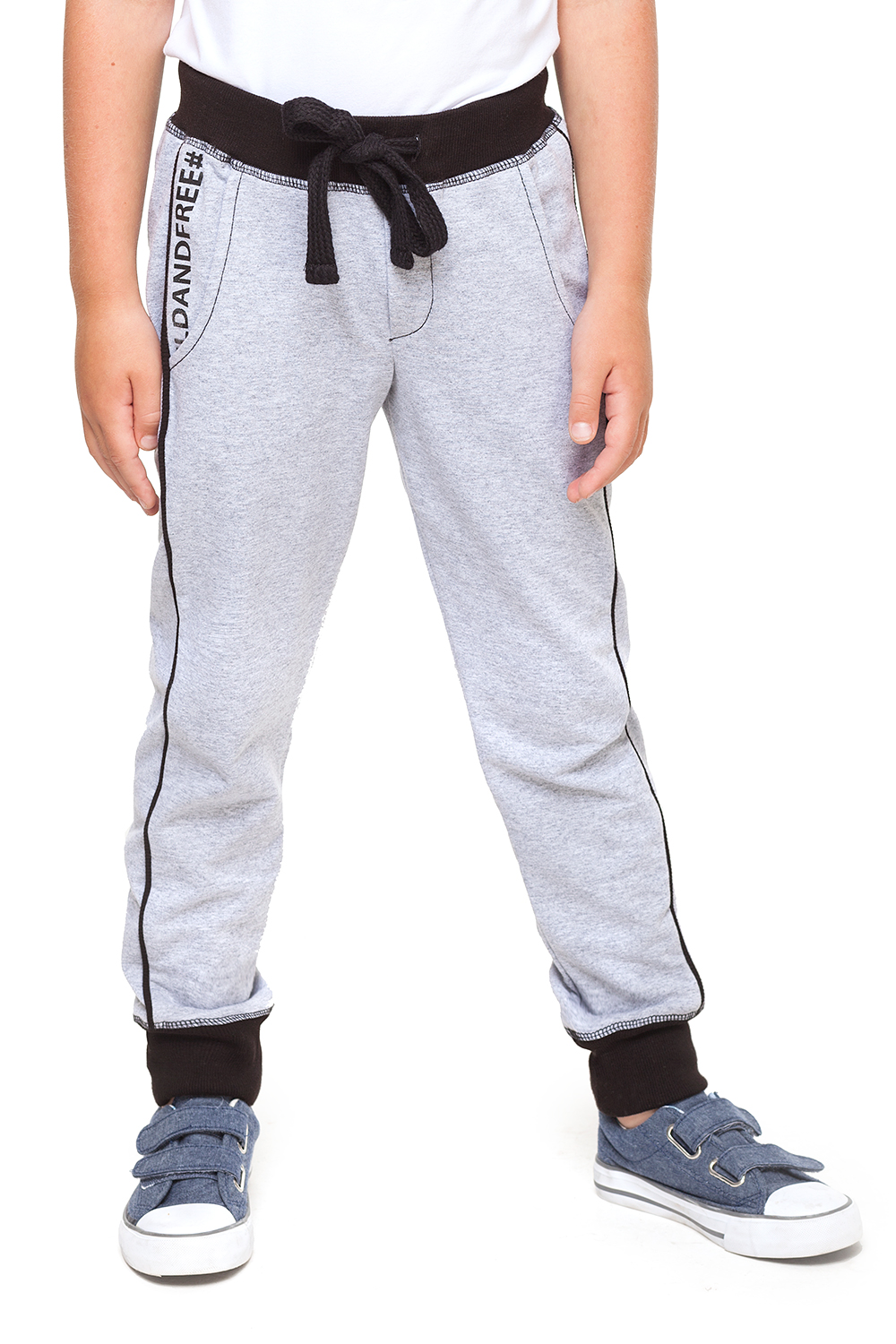 Спортивные брюки выполнены из эластичного двухниточного футера. Изделие дополнено контрастными отстрочками, пояс и манжеты из рибаны. Широкий пояс на резинке с завязкой на шнурок. Боковые наклонные карманы с декоративным принтом.