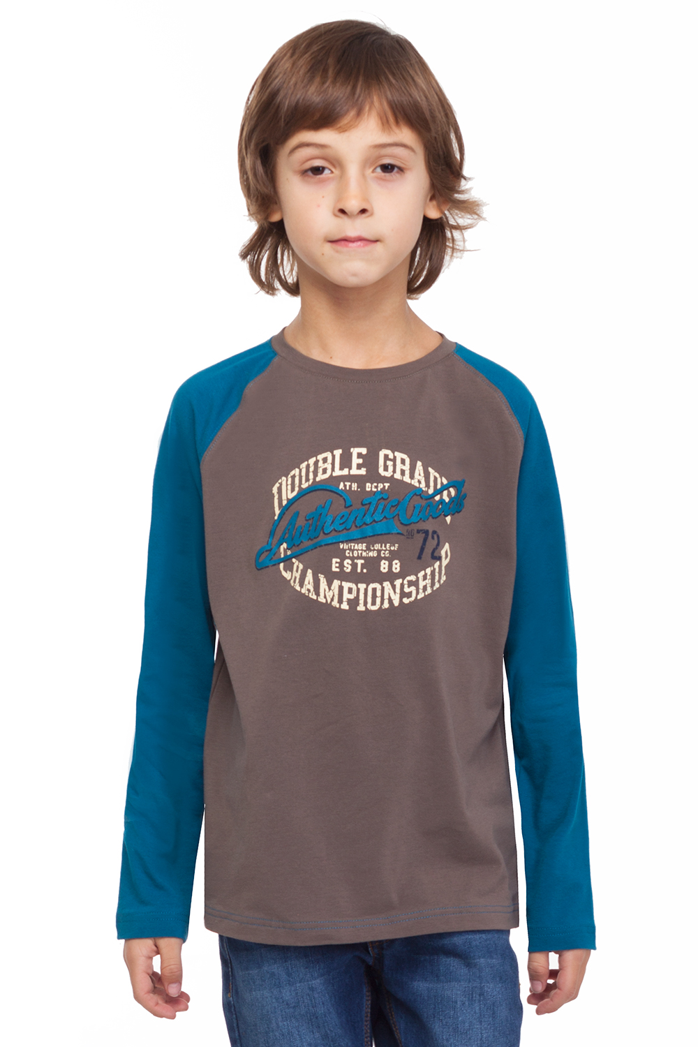 Лонгслив в спортивном стиле выполнен из трикотажного полотна. Рукава-реглан контрастного цвет, спереди печатный принт.