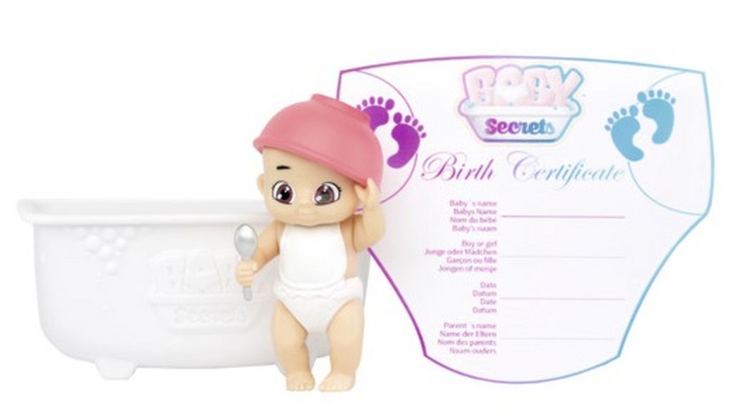 В наборе один пупсик высотой 6 см и ванна. Наполните ванну холодной водой, поместите пупсика и наблюдайте, как изменится цвет памперсов: если розовый, то это девочка, если голубой - то мальчик!