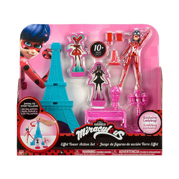 Специальный держатель можно установить на верхушку Эйфелевой башни, а на другом конце закрепить фигурку Леди Баг. Вращаясь, она может сбивать пластины с изображениями злодеек на подставках: