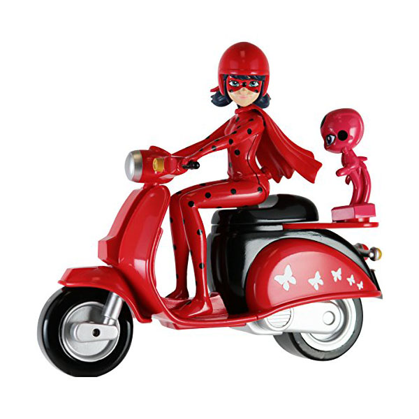 У скутера подвижные колеса, а фигурку Тикки, сидящего сзади, можно перемещать в стороны. С таким прекрасным игровым набором можно разыгрывать сценки из мультсериала или придумать собственные приключения. Например, представить, что Леди Баг на своем скутере гонится за опасным преступником.