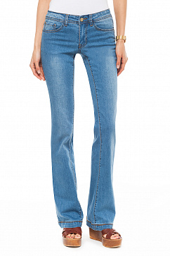 Классические расклешенные джинсы из мягкого эластичного денима светло голубого цвета. Плотное облегание в верхней части, клеш от колена.