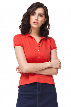 Футболка-поло из плотного эластичного трикотажа. Застежка на планку на пуговицах. Воротник и манжеты из хлопковой рибаны. Удлинённая спинка, разрезы в боковых швах. На груди вышивка с логотипом.