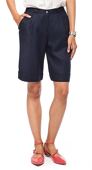 Удобные и универсальные шорты на каждый день. Удлиненная модель с широкими прямыми штанинами с отворотом и прорезными карманами выполнена из текстурированного материала вискозы со льном.