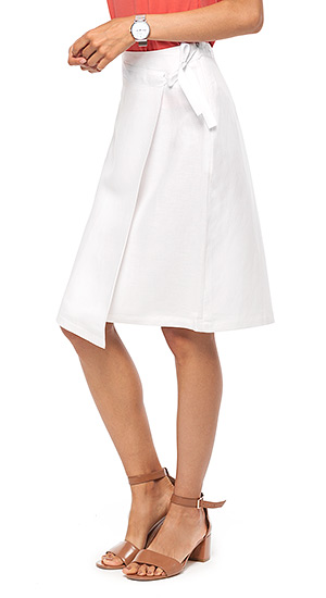 Юбка-миди с запахом, который фиксируется завязкой на репсовую ленту. Модель выполнена из текстурированного материала вискозы со льном.