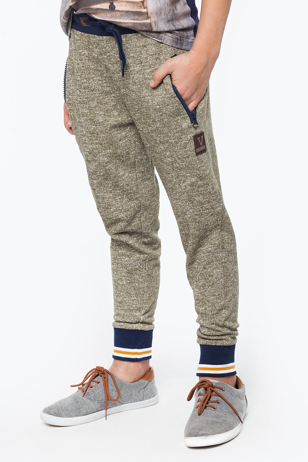 Спортивные брюки выполнены из двухниточного футера с добавлением полиэстера для большей износостойкости. Пояс и манжеты выполнены из рибаны, пояс на резинке и завязке на шнурок. Спереди карманы на молнии и нашивка с логотипом.