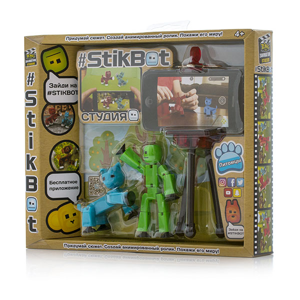 Наборы с питомцем стикботы помогут Вам придумывать сюжеты и создавать забавные видеоролики, используя специальное приложение для мобильных устройств, которое Вы можете скачать бесплатно на App Store и Google Play. Фигурки выполнены из пластика. Благодаря уникальной конструкции стикботы могут принимать различные позы и фиксировать их. На руках и ногах фигурок находятся присоски, с помощью которых можно крепить человечков к любым плоским поверхностям. Также в комплект набора входит штатив для мобильного устройства. Расставьте фигурки и снимайте, после каждого кадра немного меняя положение рук и ног фигурок. После выполненного снимка на экране мобильного устройства останется полупрозрачный силуэт элементов, которые присутствовали в кадре. Эти очертания помогают определить, где и в каких позах фигурки находились в предыдущем кадре. На видеоряд можно наложить музыку, звуки и собственный голос. Также приложение позволяет менять фон. Внимание! Игрушка представлена в цветовом ассортименте, цена указана за 1 набор. При оформлении заказа на сайте выбранный вариант в поставке не гарантирован.