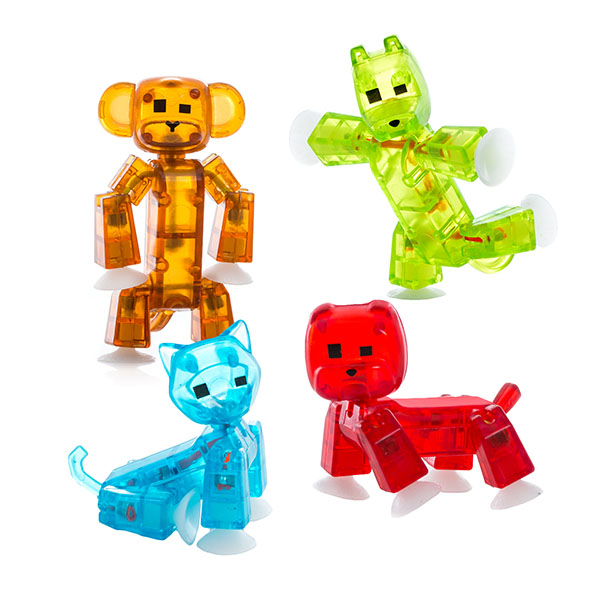 Фигурки питомцев выполнены из полупрозрачного пластика. Благодаря уникальной конструкции стикботы могут принимать различные позы и фиксировать их. На руках и ногах фигурок находятся присоски, с помощью которых можно крепить человечков к любым плоским поверхностям.