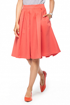 Пышная юбка в крупную складку выполнена из плотного хлопкового полотна с эластаном сатинового плетение с мягким атласным блеском. Юбка на широком притачном поясе, карманы в боковых швах. Яркий цвет и женственный фасон юбки идеальный вариант для летнего гардероба.